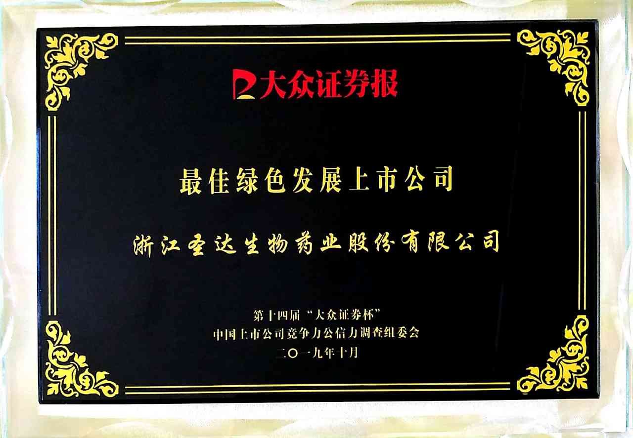 圣達(dá)生物榮獲“最佳綠色發(fā)展上市公司”榮譽(yù)稱號(hào)