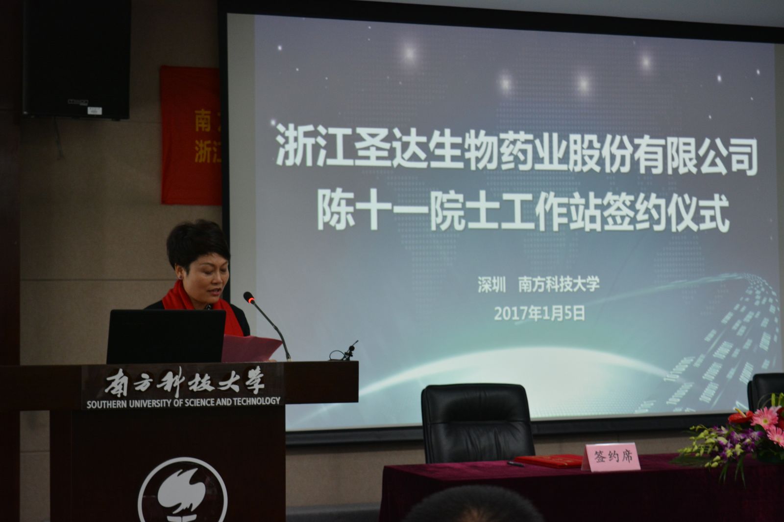 浙江圣達(dá)生物藥業(yè)股份有限公司董事長(zhǎng)洪愛(ài)在簽約儀式上致辭表示,成立陳十一院士專(zhuān)家工作站將對(duì)加強(qiáng)雙方合作有很大的促進(jìn)。圣達(dá)生物藥業(yè)股份有限公司作為國(guó)家高新技術(shù)企業(yè),將進(jìn)一步加強(qiáng)與南科大的科研合作,打造更好的科技研發(fā)平臺(tái)。